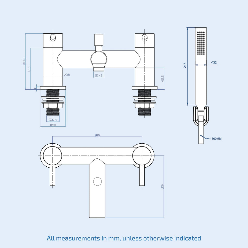 - Twin lever tap design for adjusting water flow and temperature, creating exceptional bathing experience