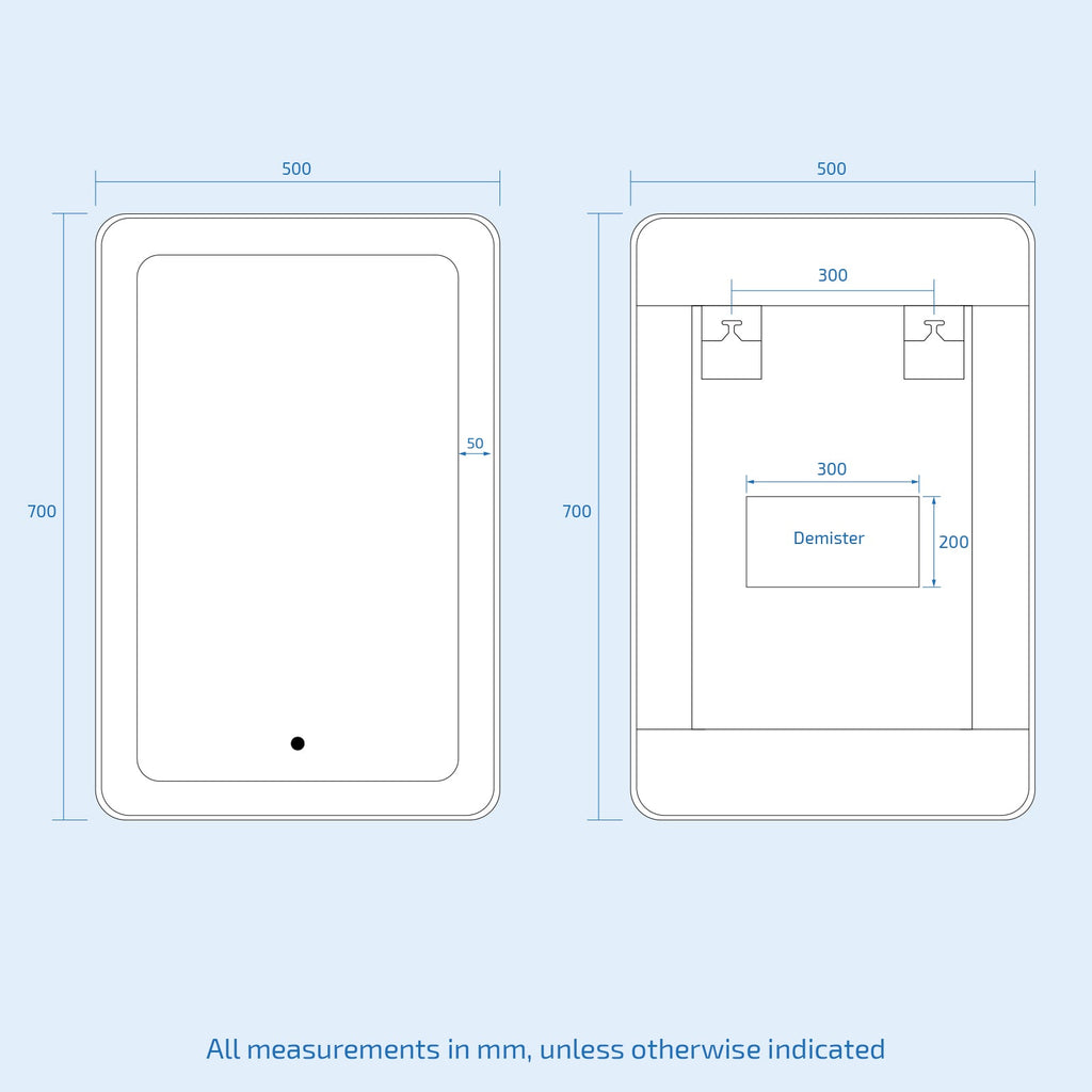 - Built-in demister pad assures the mirror remains crystal clear without steam condensation during a shower