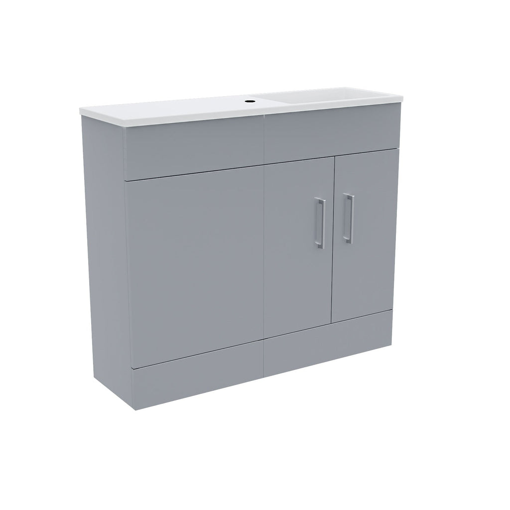 Searching for the perfect fusion of efficiency and elegance? Look no further. Through not only its glossy resin top finish, ingeniously reversible basin and an abundance of storage with moisture-resistant cabinet doors, this idyllic option is not only designed to emulate an immaculately minimalist look through its refined exterior, but also to ensure that its sophisticated aesthetic is effortlessly maintained in even the most compact of spaces.