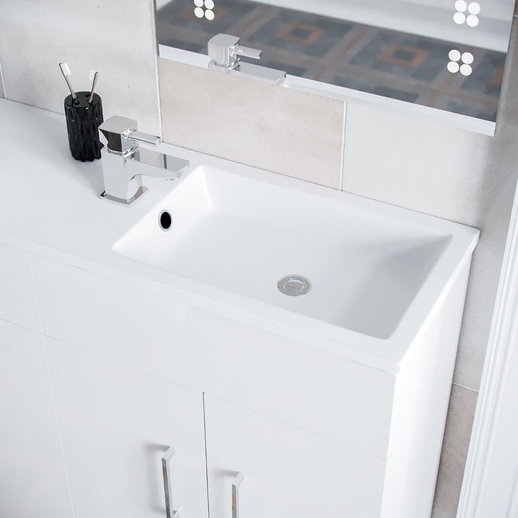 - Basin finish: White