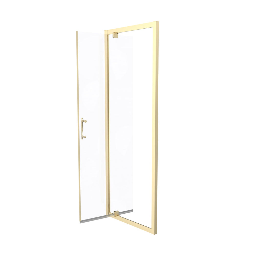 This pivot shower door with a brushed brass finish comes as a glass panel screen that can be placed in the corner of your bathroom. The brushed brass finish will compliment contrasting light or dark coloured interiors and gives a modern look to the corner of your bath or shower room. The best feature is the functionality of the reversable pivot door which can be installed to open from right to left or left to right depending on what suits you! Matching taps and mirrors are also available.
