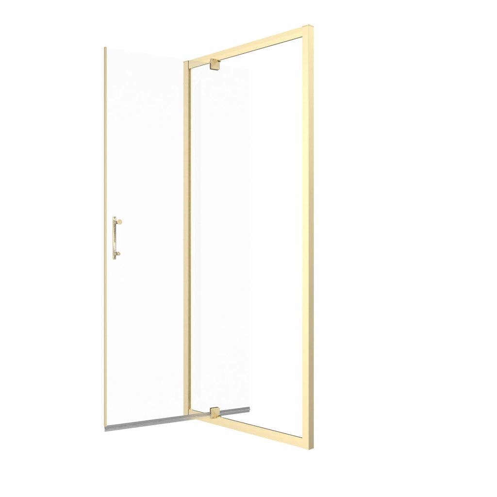 This pivot shower door with a brushed brass finish comes as a glass panel screen that can be placed in the corner of your bathroom. The brushed brass finish will compliment contrasting light or dark coloured interiors and gives a modern look to the corner of your bath or shower room. The best feature is the functionality of the reversable pivot door which can be installed to open from right to left or left to right depending on what suits you! Matching taps and mirrors are also available.