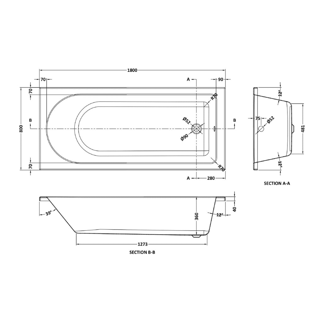 - 170 Litres Tap mounting - End of bath (above overflow)
