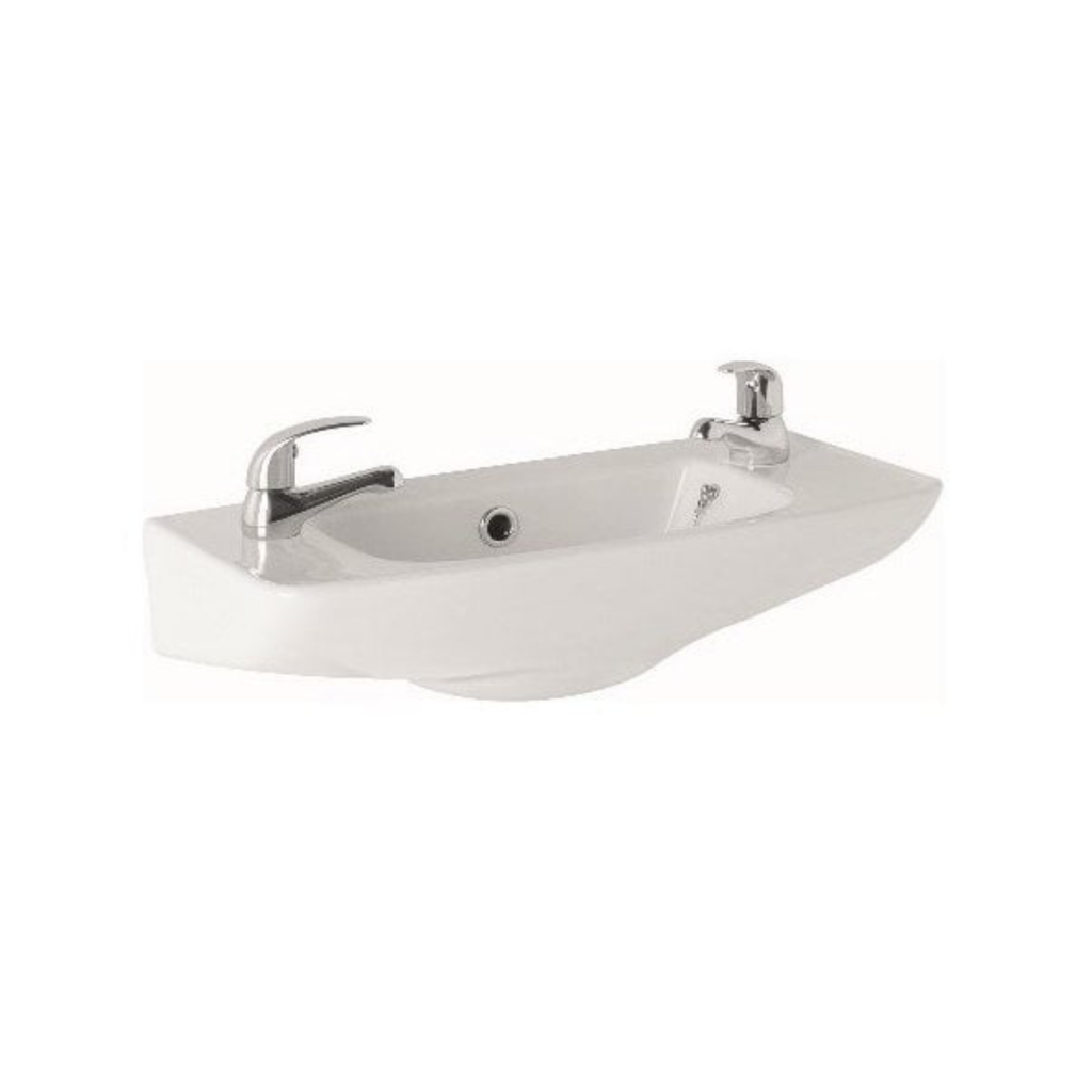 - Basin includes two tap holes - suitable for a standard pair of basin taps or basin mixer taps