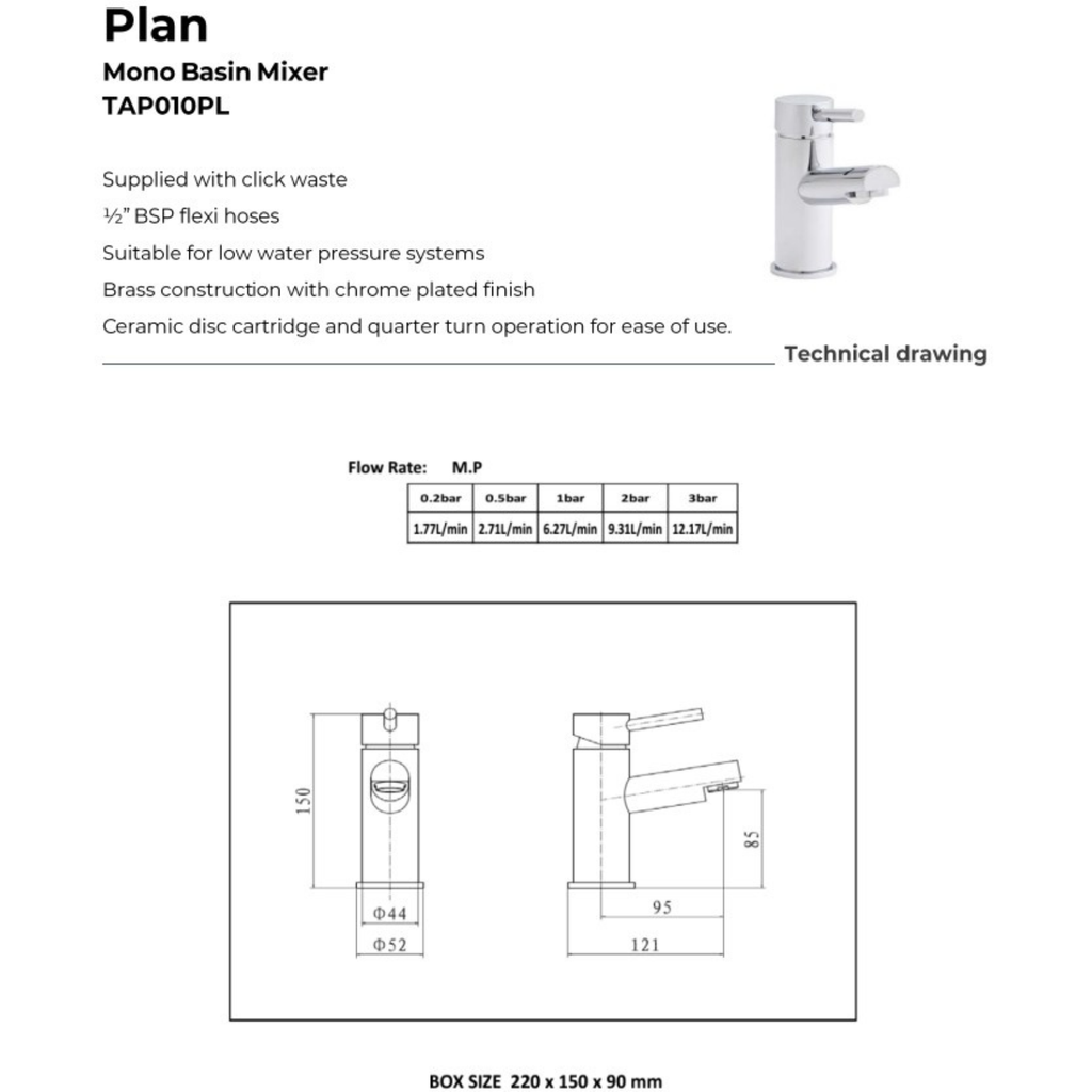 Kartell Plan Mono Basin Mixer Tap with Click Waste - Chrome