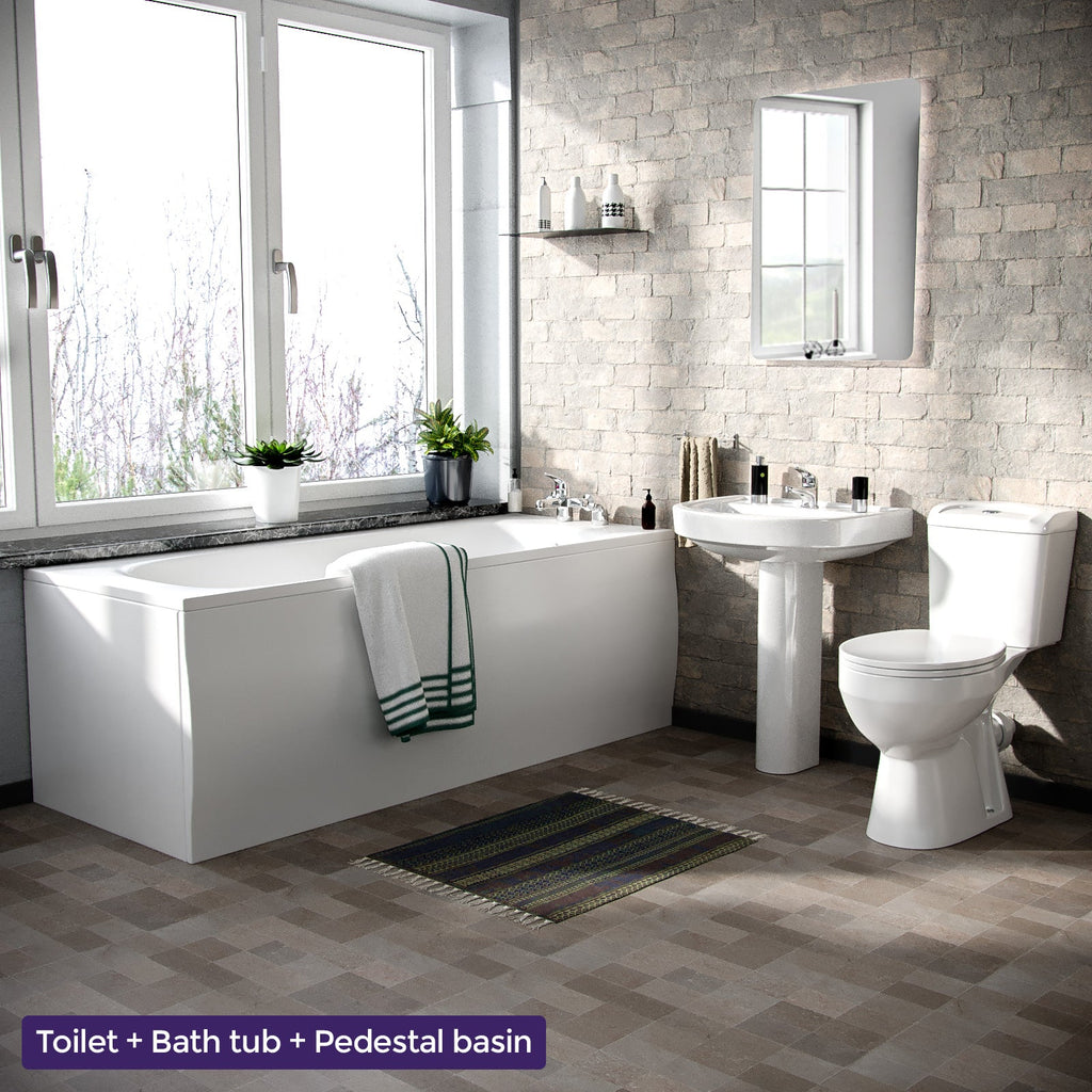 A great combination of essential bathroom items including a Close Coupled Toilet, Basin With Full Pedestal, and Round Bath Tub. The Kentucky bath suite can provide the perfect choice for your bathroom.