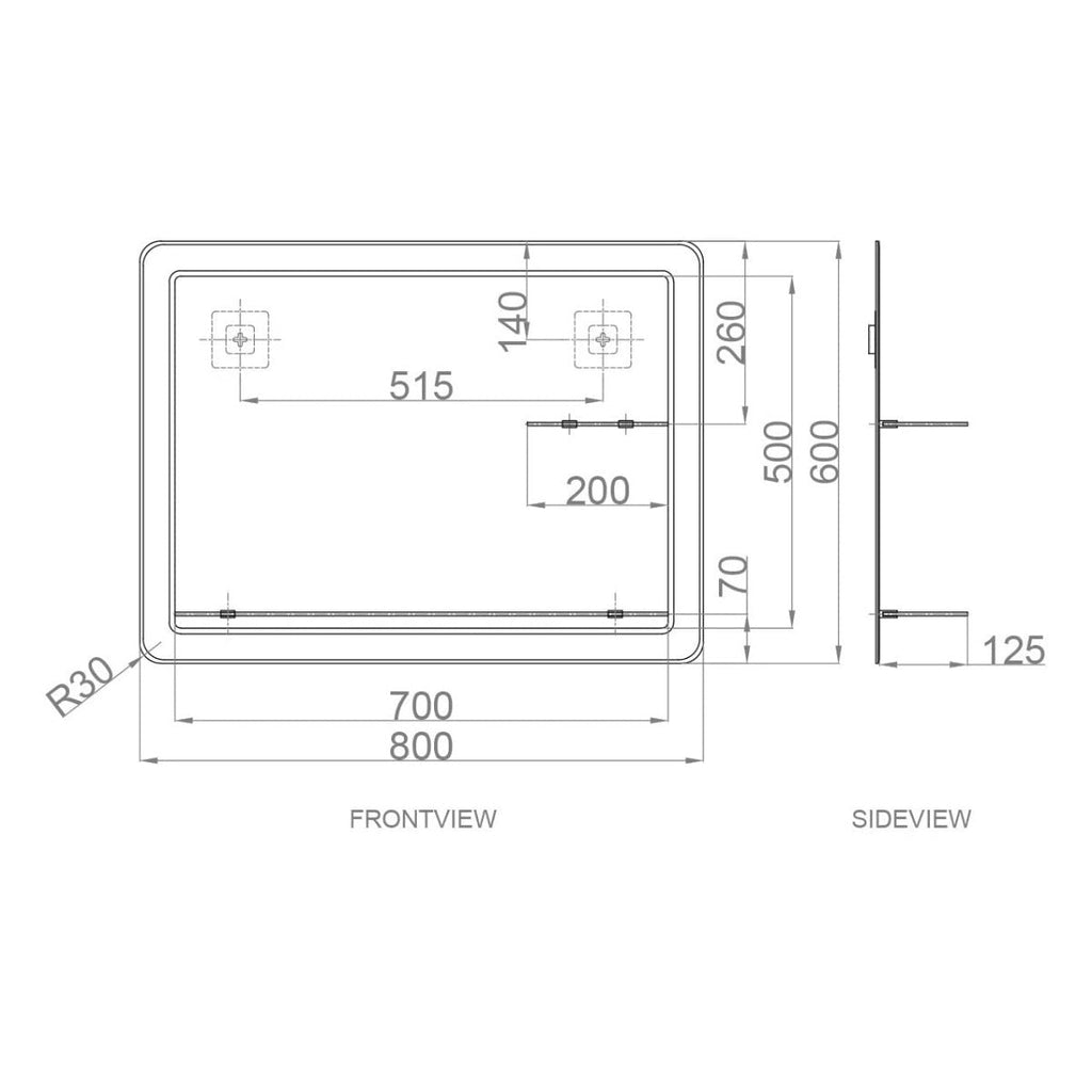 Bowen 800 x 600 Round Corner Mirror with Double Glass Shelf