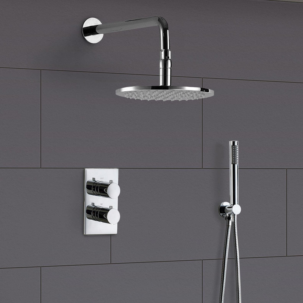 This shower set features a stylish and modern round design with a LED overhead and includes a handset for extra flexibility.