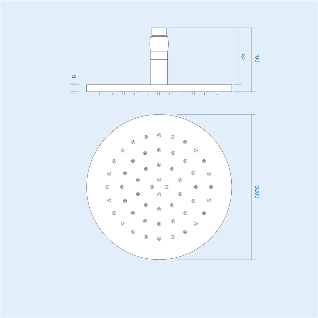 - Shower head dimensions: 200mm x 200mm