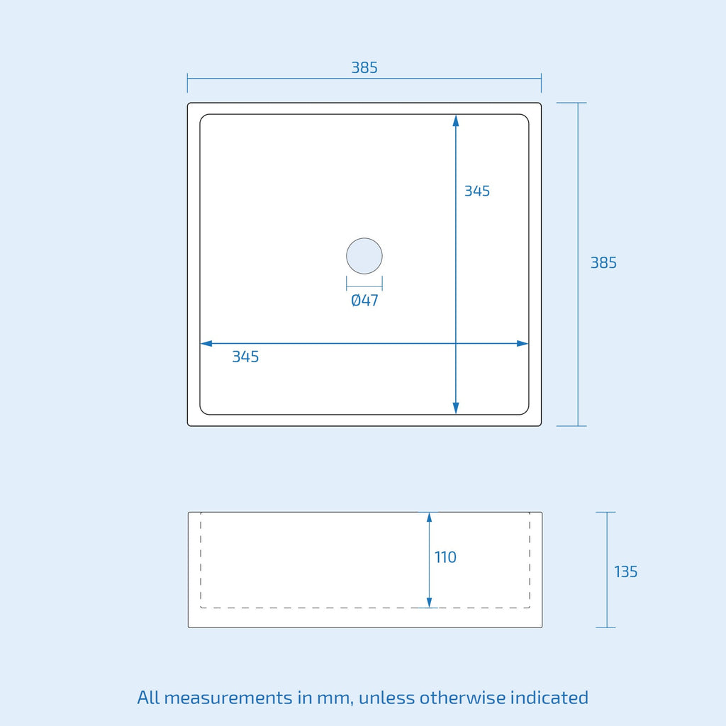 - Basin Shape: Square with rounded edges