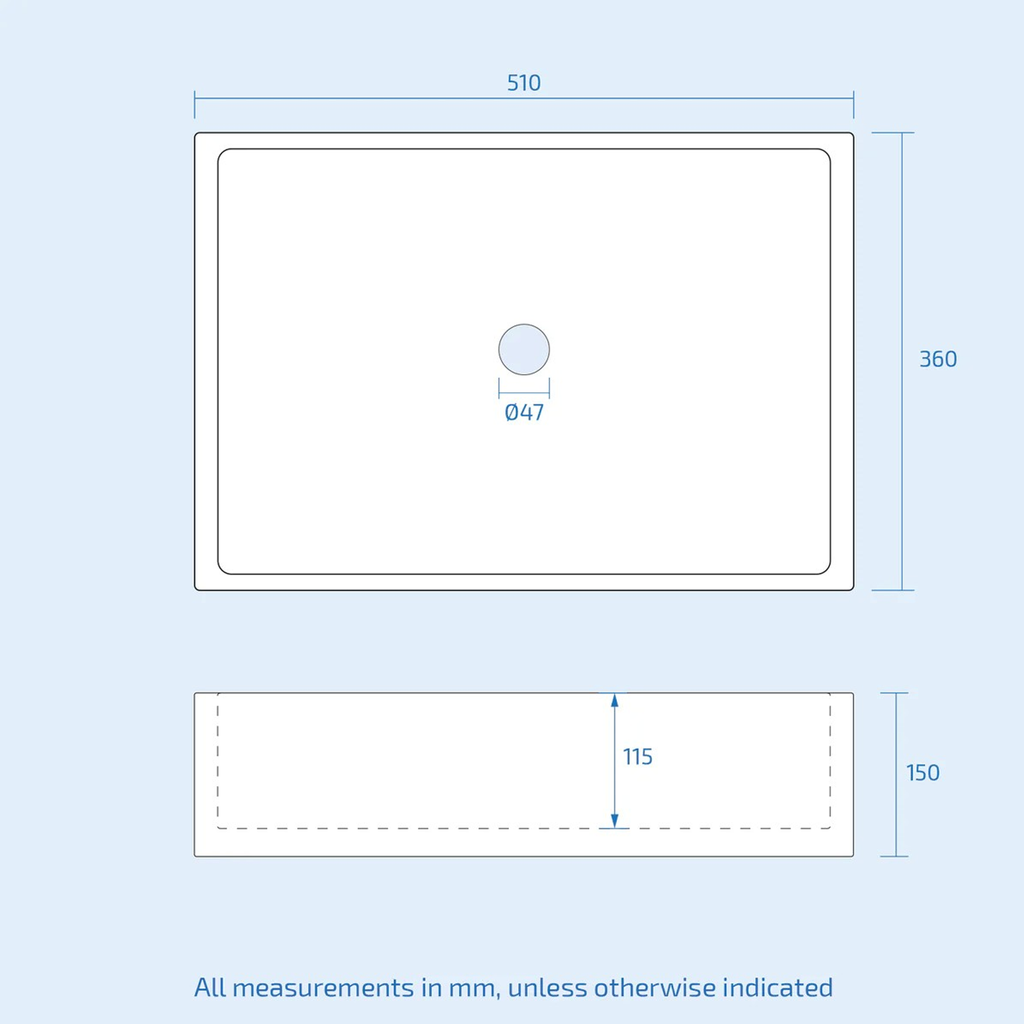 - 510 × 360 mm rectangular counter top basin, ideal for cloakrooms and en-suites