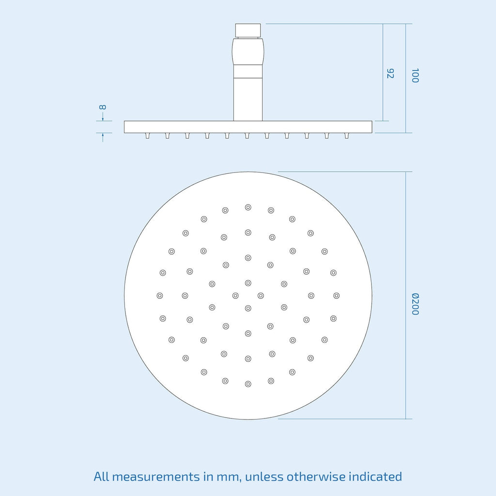 - ABS Shower head dimensions - 200mm