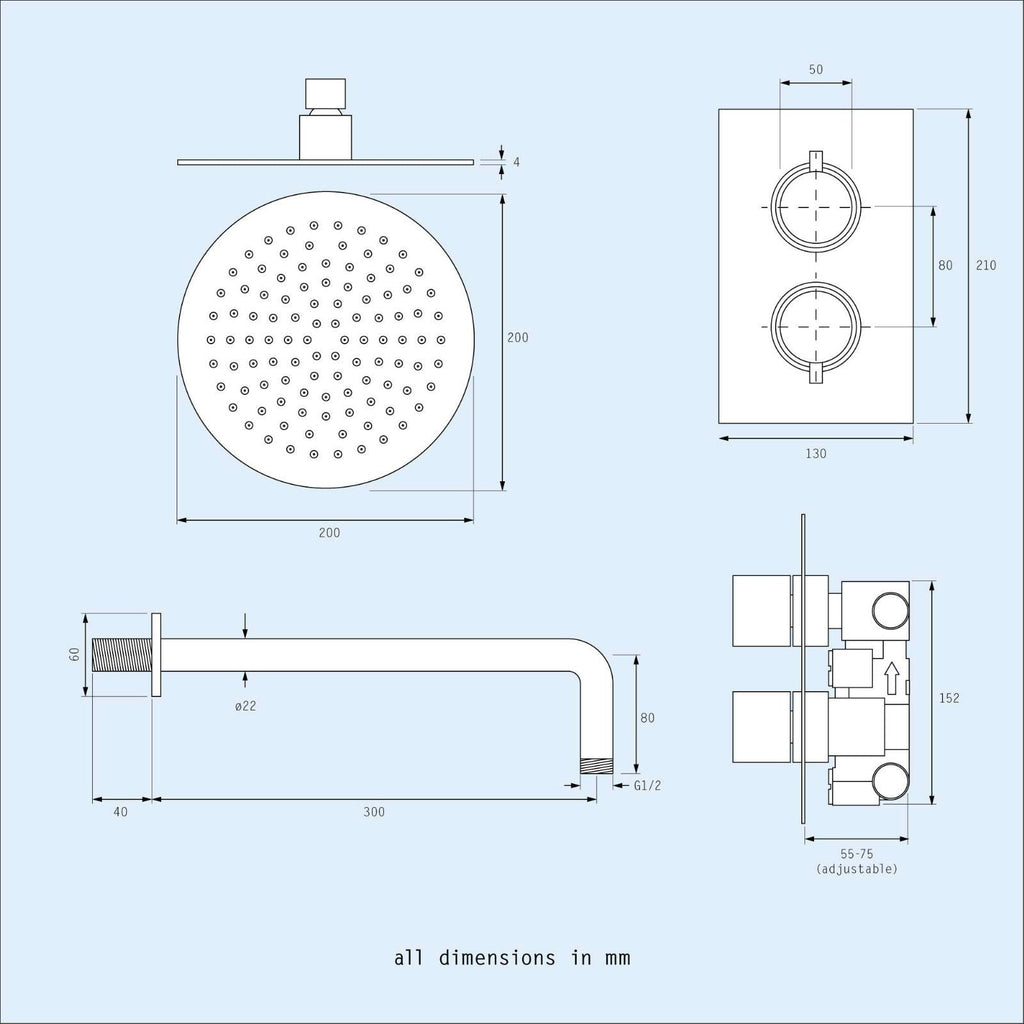 Ultra Thin Shower Head With Wall Mounted Arm Details