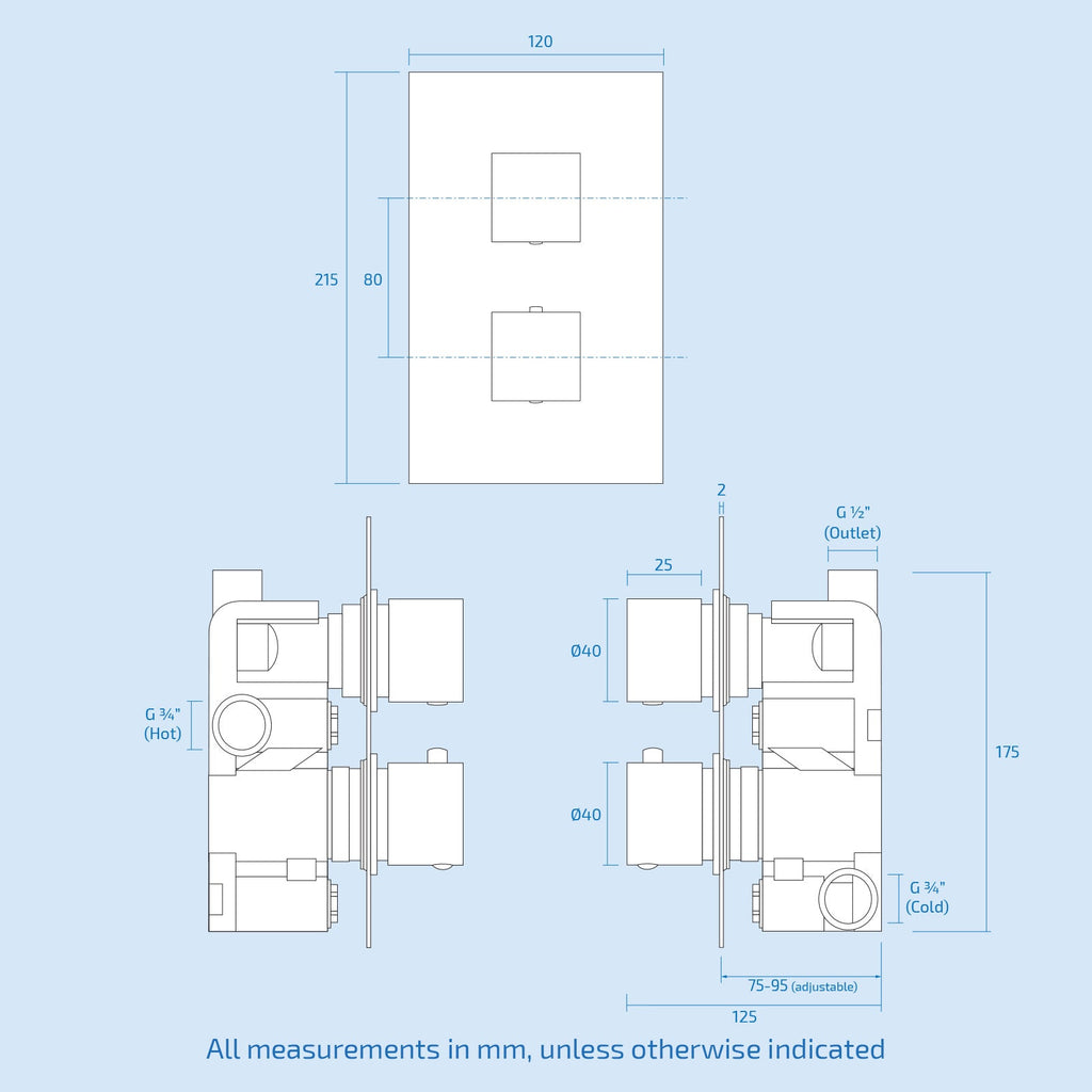 This Concealed Thermostatic Valve will compliment any modern bathroom suite, offers thermostatic showering via two easy-to-operate controls for temperature and flow.