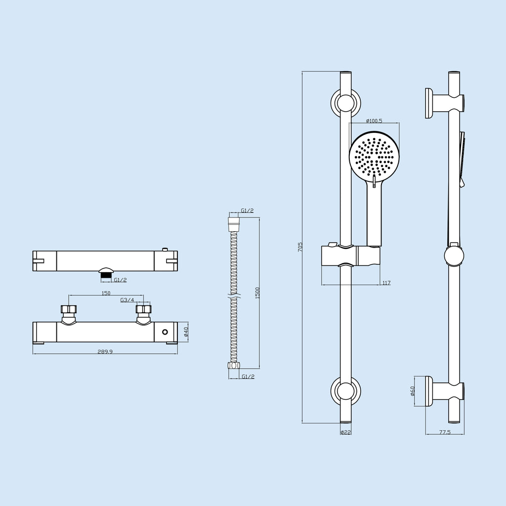 The Round Thermostatic Mixer With Slider Rail & Handset offers a sleek and functional showering experience. The thermostatic valve ensures a consistent and safe water temperature, while the slider rail allows for easy height adjustment of the handheld showerhead. The included handset provides flexibility during showers, and the accompanying hose ensures a convenient connection. With its contemporary design and practical features, this set combines style and functionality for a modern bathroom upgrade.