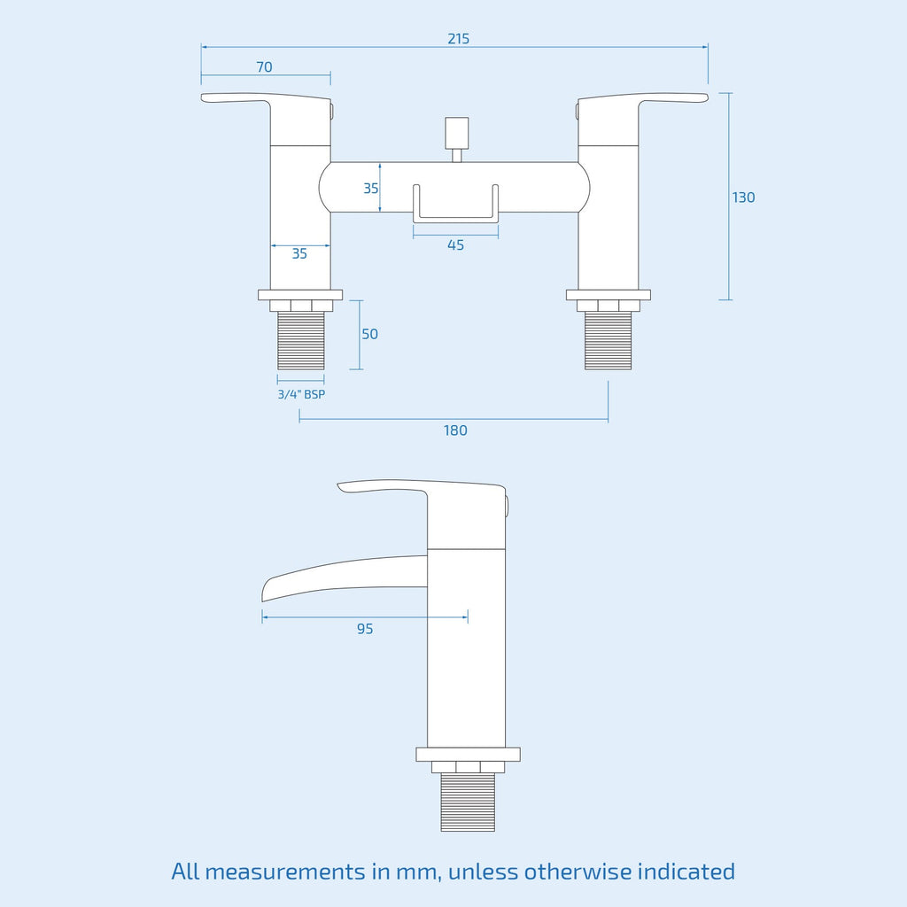 - Bath Filler: 1 x tap, 2 x fixing nut, 2 x washer