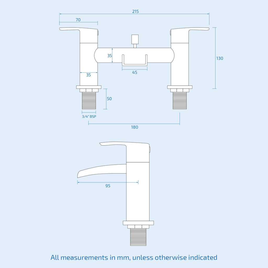 - Twin Lever Handle - controls Hot and Cold temperature and flow