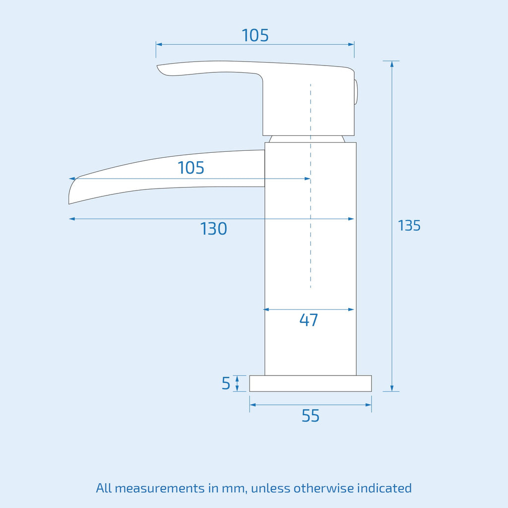 - Basin Mono Mixer: 1 x tap, washer, plate, threaded bolt with fixing nut, 2 x 350mm flexi pipes and instructions