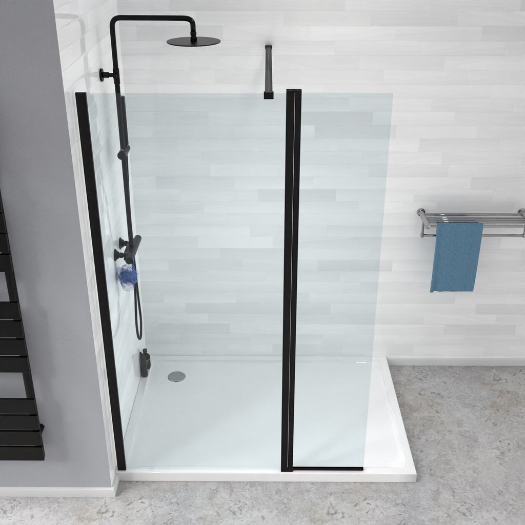 This ultra-stylish open walk-in shower enclosure is set to add elegance into the bathroom and perfect for small spaced bathrooms. Made from 1 mm aluminium profile and coated in a stunning matte black finish. The glass panels on the shower enclosure are created from tempered clear glass. The elegant walk-in shower enclosure has a 20 mm wall adjustment for when the walls are slightly out.