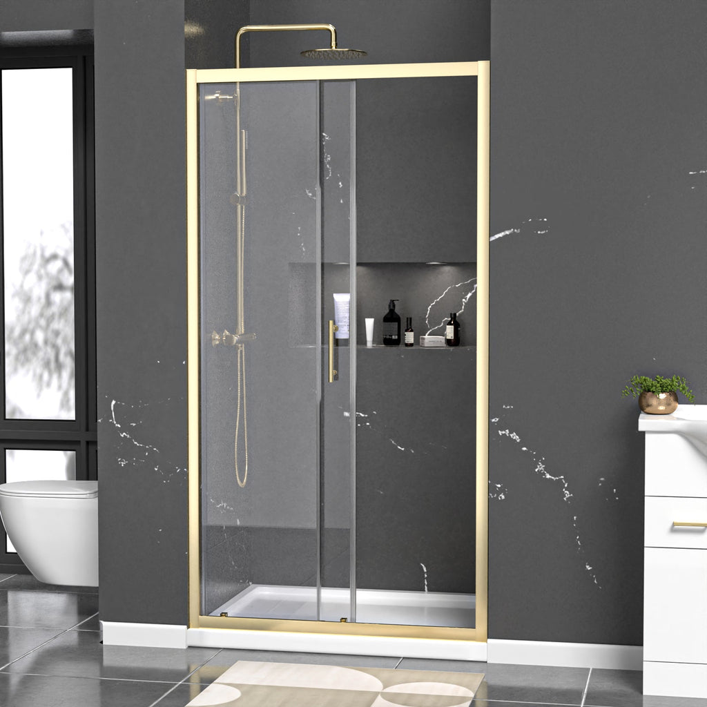 This shower enclosure glass sliding door comes in a brushed brass finish which gives a modern look to your bath or shower room. The sliding door is made from 6mm premium tempered glass with smooth operation. It is particularly useful as it will help you to save space by not opening out into the room. For easy installation of the sliding door, the aluminium frame allows for a 40 mm wall adjustment for when the walls are slightly out.