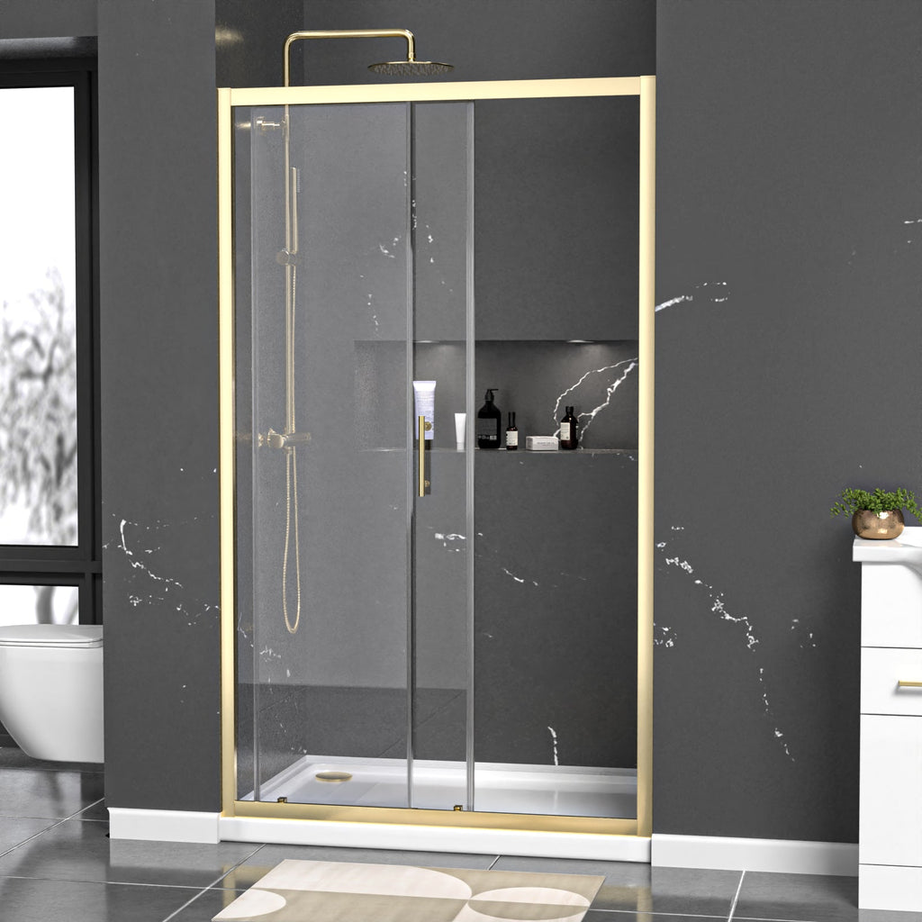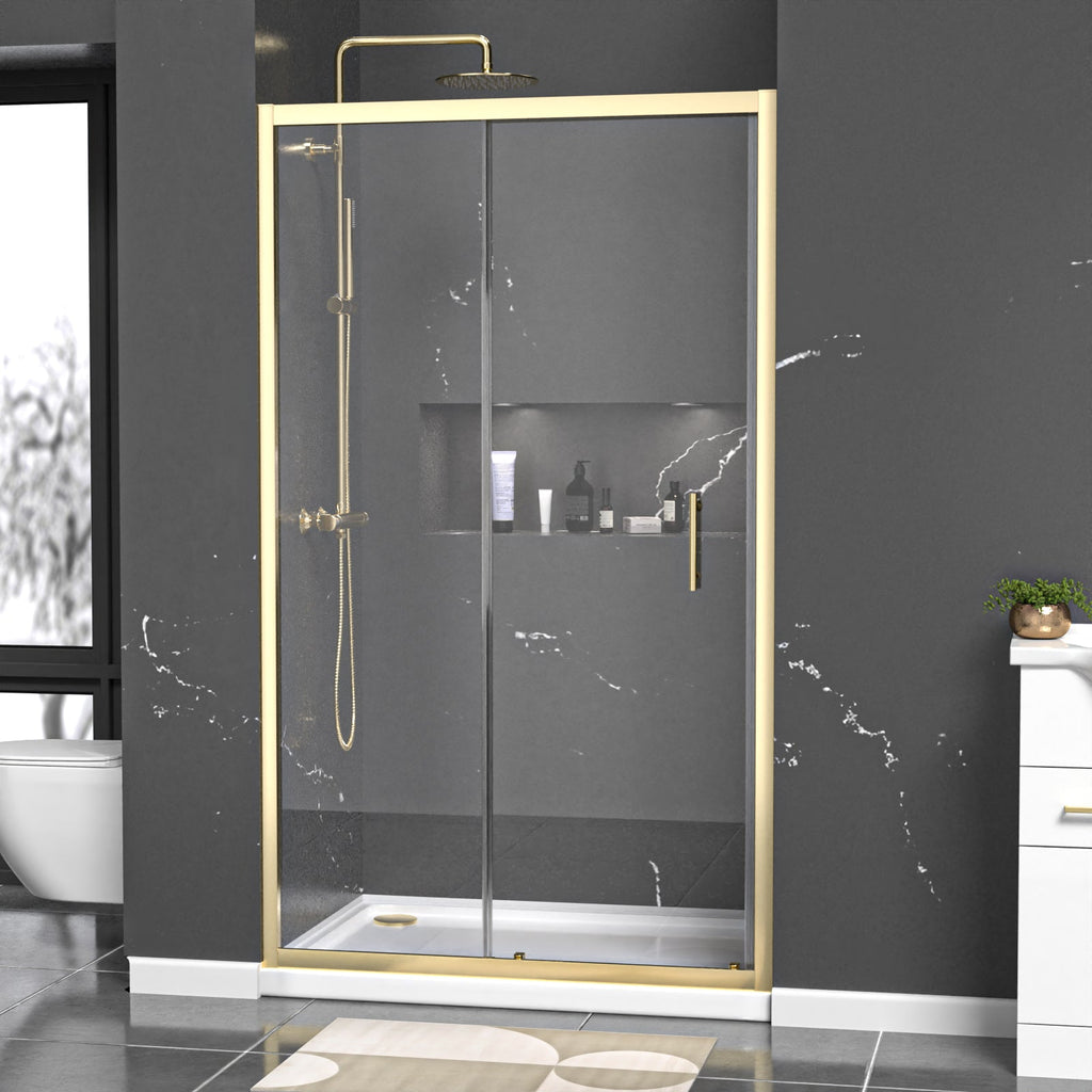 This shower enclosure glass sliding door comes in a brushed brass finish which gives a modern look to your bath or shower room. The sliding door is made from 6mm premium tempered glass with smooth operation. It is particularly useful as it will help you to save space by not opening out into the room. For easy installation of the sliding door, the aluminium frame allows for a 40 mm wall adjustment for when the walls are slightly out.