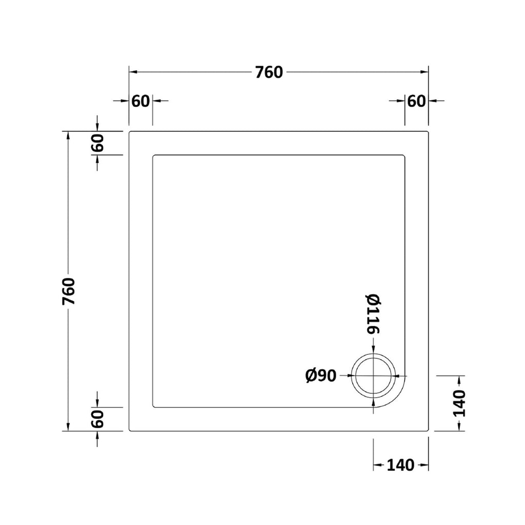 - Waste Outlet: 90mm