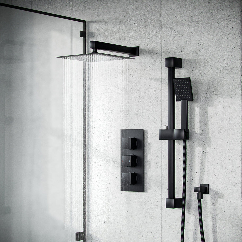 This stunning matt black slim round concealed thermostatic mixer valve shower set is a perfect addition to any modern designer bathroom. The thermostatic mixer valve gives you complete temperature control with a built-in anti-scalding device, so you'll never have to worry about a drop in temperature again.