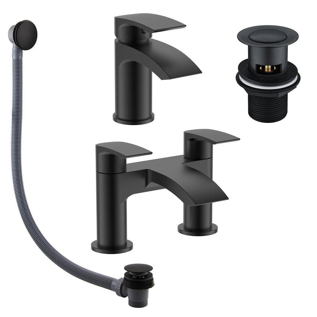 This beautiful tap set is perfect for adding a contemporary touch to your bathroom. The sleek design with the sturdy lever provides ease of use and is finished in matte black. It comes with Bridge Deck Mounted Bath Filler and Basin Single Lever Mixer Tap.