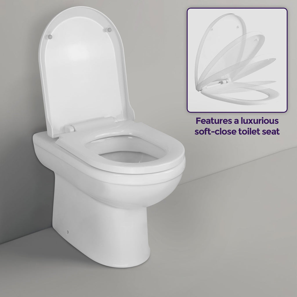 - Toilet Seat: Top fixing, soft close seat and cover