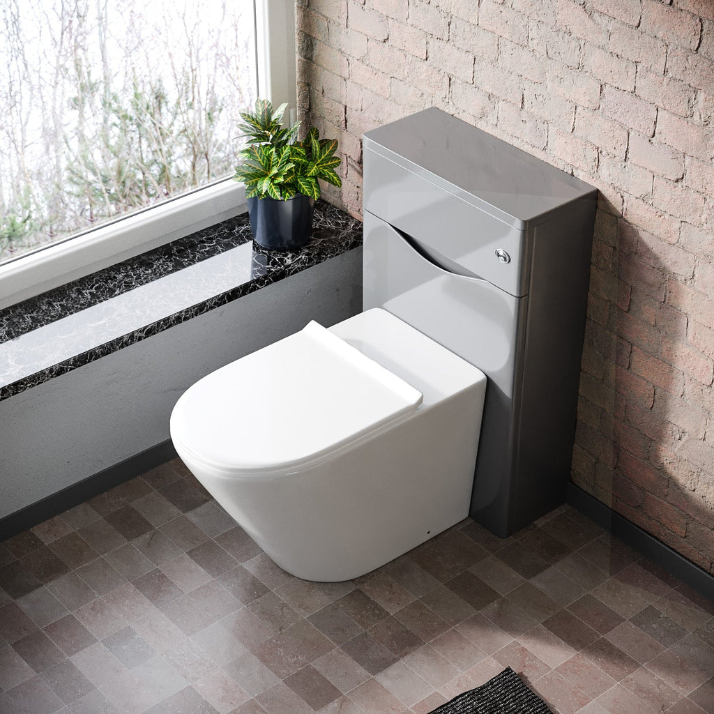The Merton 500mm freestanding grey WC unit comes with a rimless back to wall toilet pan in a modern design providing a perfect solution to complete your bathroom with a stylish look. The toilet is made from white ceramic and designed with subtle curves and clear-cut direct lines. It comes with a soft close toilet seat and is covered with a high gloss finish. Please Note: The WC unit comes flat pack.