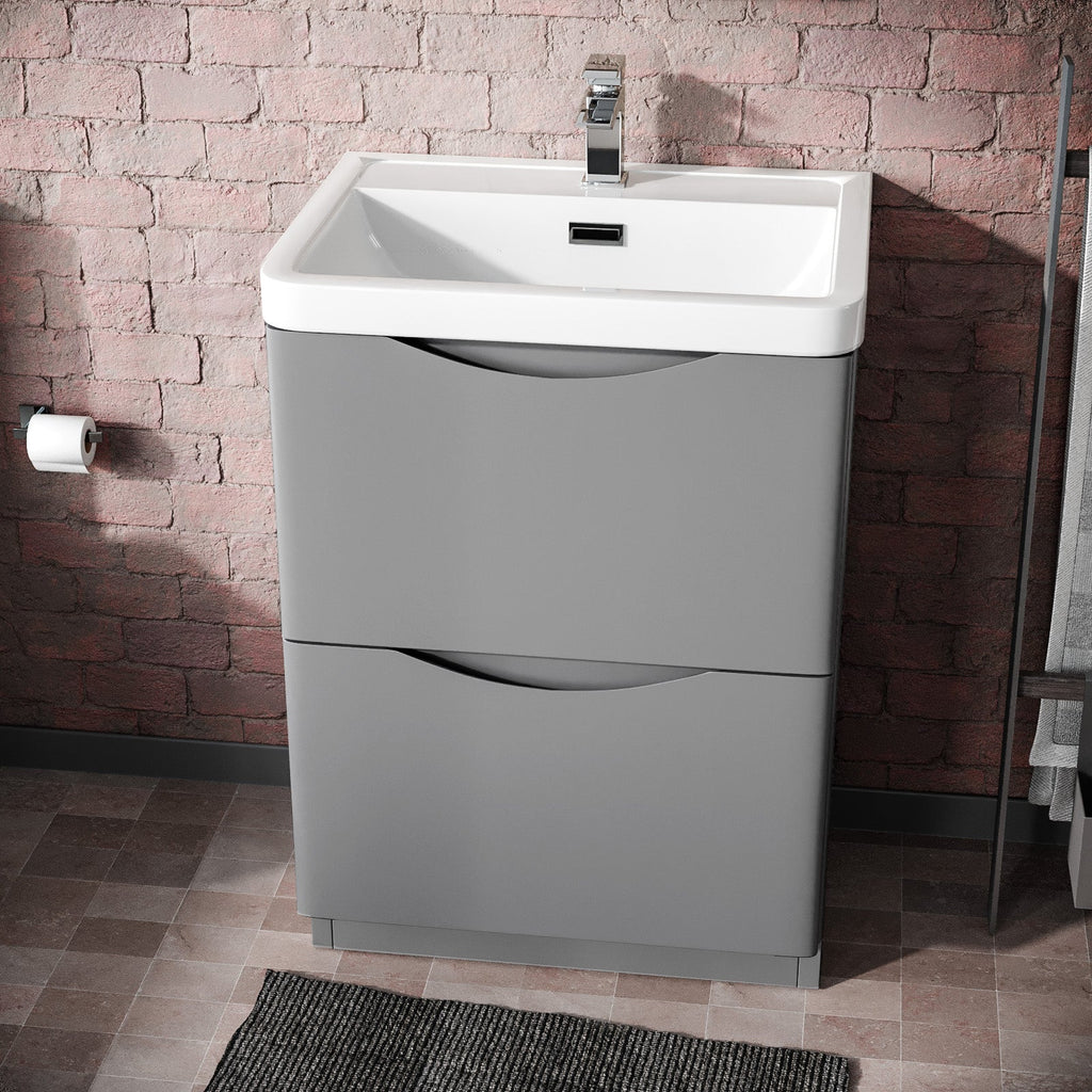 It features a white resin basin top, with a two-door water-resistant MDF cabinet bringing a modern look to your bathroom.