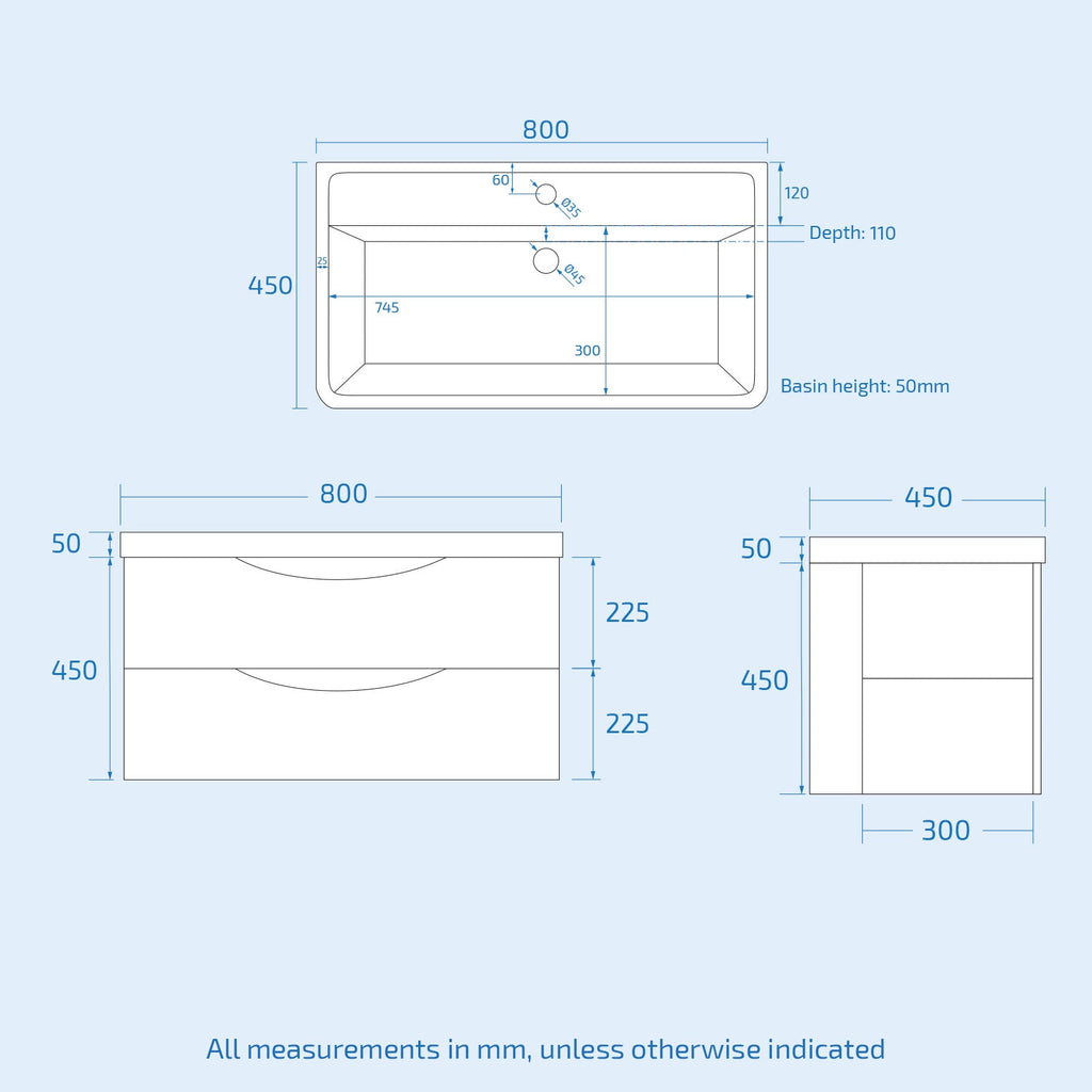 This stunning 800 mm white basin vanity unit comes fully assembled. Our wall hung basin vanity unit gives you the best of both worlds, combining incredible durability and a beautiful gloss finish. This unit also has soft-close drawers and a concealed sliding track to keep the inner mechanisms tastefully hidden. The clean-cut lines and gently curved edges work in harmony together to blend into a truly lovely bathroom suite. This suite will complement any rectangular bath or shower, creating a stunning complete modern bathroom, cloakroom or en-suite. Suitable for domestic commercial applications.