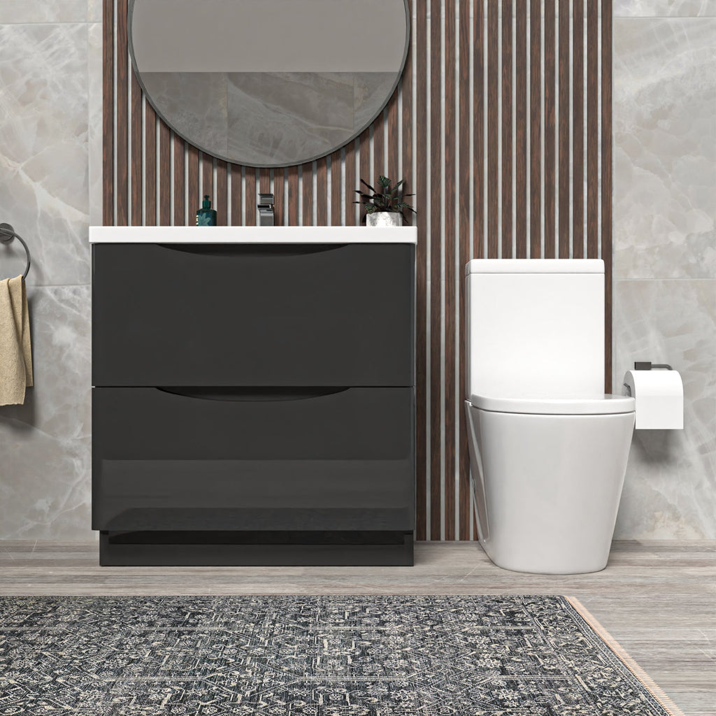 Our floor standing basin vanity unit gives you the best of both worlds, combining incredible durability and a beautiful gloss finish. This unit also has soft-close drawers and a concealed sliding track to keep the inner mechanisms tastefully hidden.
