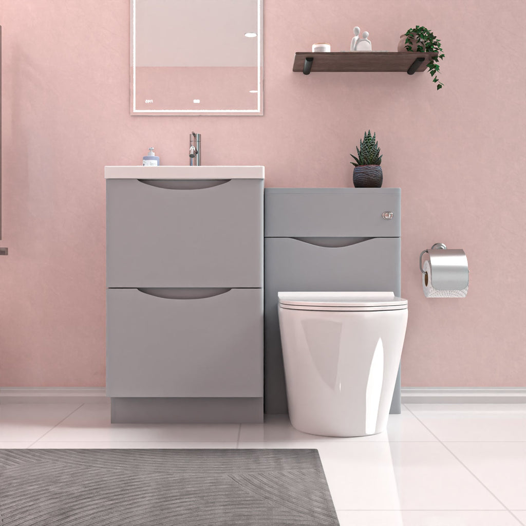 The 500mm Freestanding Matte Grey Basin Vanity, WC & Round BTW Toilet is an elegant and functional piece of bathroom furniture that is designed to provide ample storage space while also offering a sleek, modern aesthetic. This cabinet is made from moisture-proof materials, ensuring that it will remain in excellent condition even in high-humidity environments. The matte grey finish gives the cabinet a sleek, contemporary look that is sure to complement any bathroom decor.