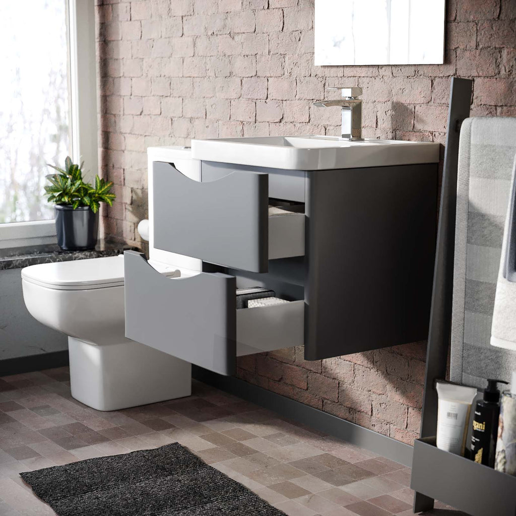 Merton bathroom wall hung basin vanity cabinet features a white resin basin top, with a two drawer water resistant MDF cabinet, brings a modern look to your bathroom. The basin comes with an overflow and one tap hole. The contemporary design hides all unsightly pipework creating a neat clean look. This modern looking bathroom basin vanity complements any rectangular bath or shower, creating a stunning modern bathroom, cloakroom or en-suite.