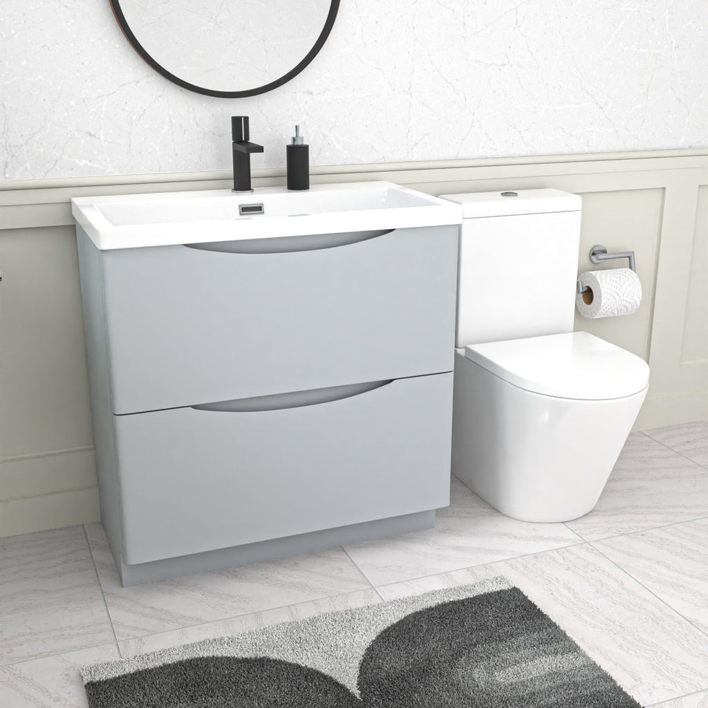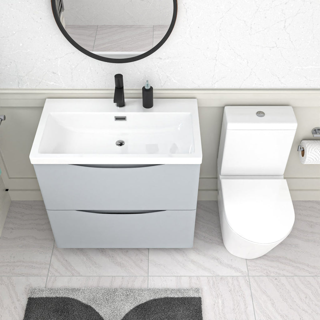 Merton Matte Grey 800mm Basin Vanity Unit and Rimless Close Coupled Toilet