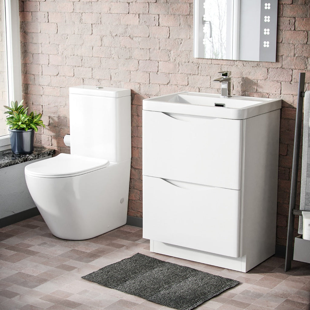 This stunning white floor-standing basin vanity unit comes complete with a close-coupled toilet. Arriving pre-assembled and constructed from a moisture-resistant material and comes complete with a basin.