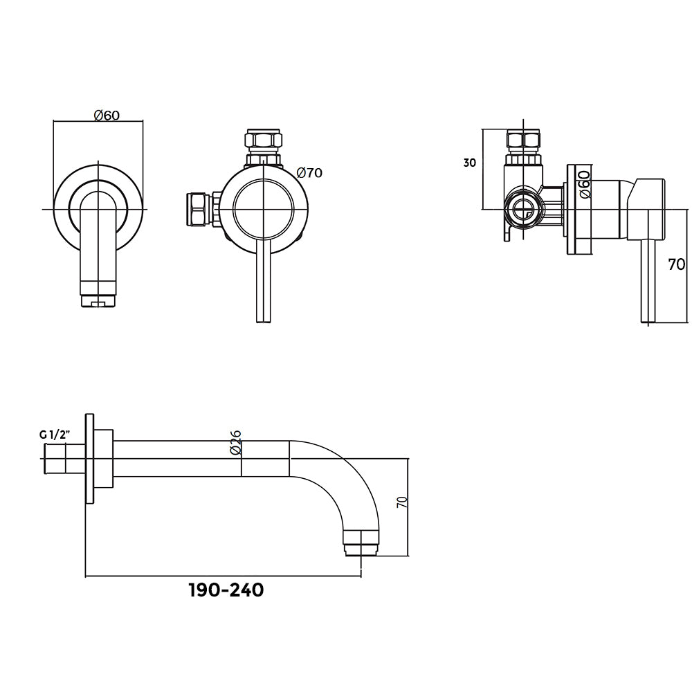 Upgrade your bathroom with concealed basin taps and transform it into a sleek and minimalistic space. The round spout tap, when paired with the round mixer valve, creates a seamless and stylish look for your basin.