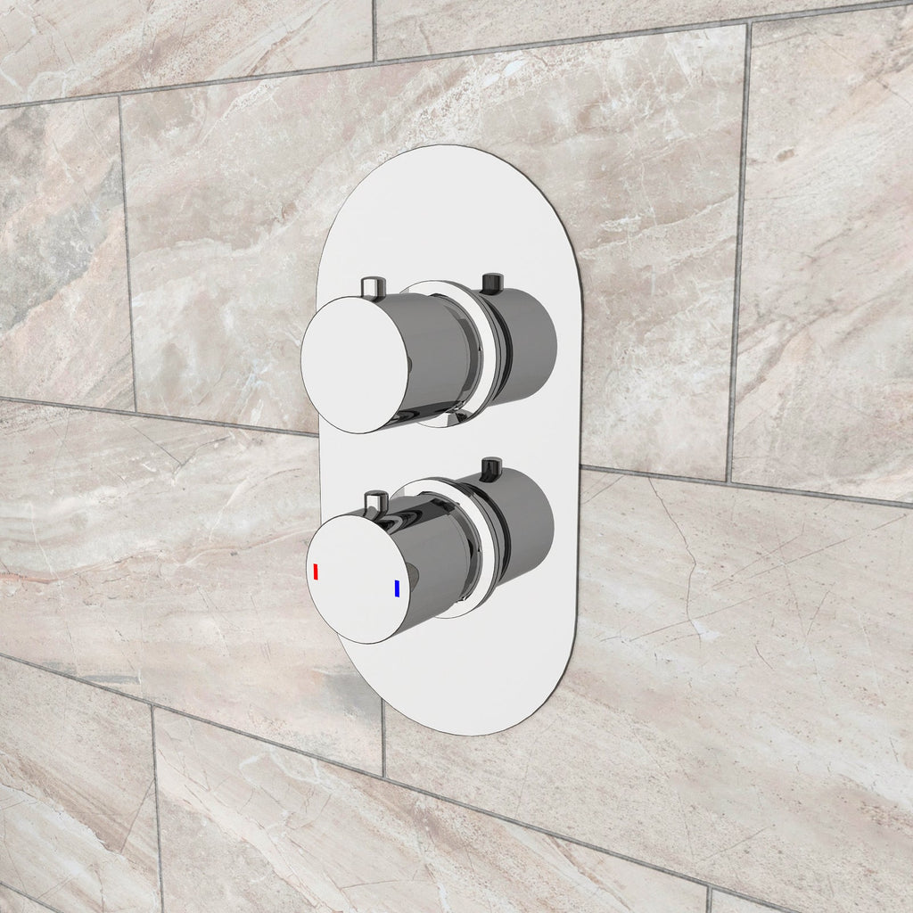 - The thermostatic showering can be accessed via the 2 dial 1 way easy-to-operate dial controls - separate controls for temperature and flow; giving you full temperature control.