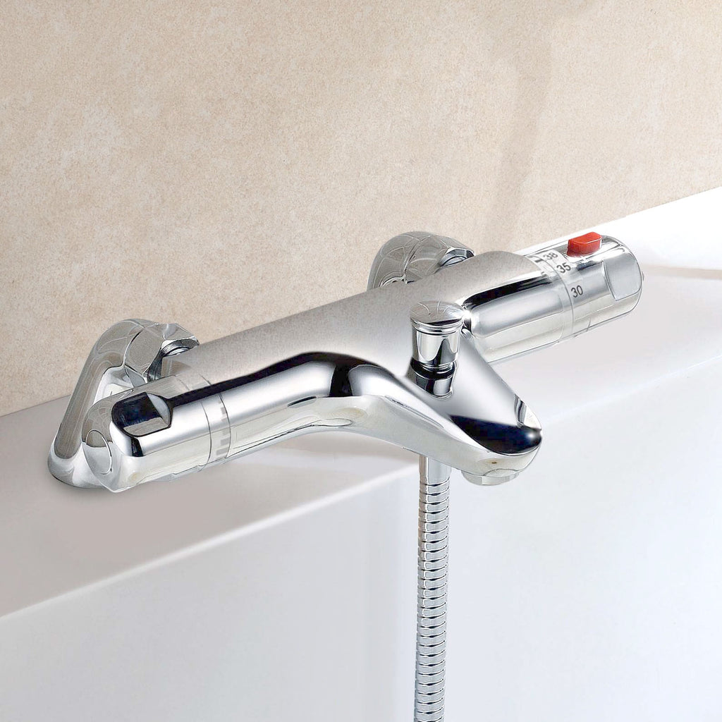 Featuring durable and dependable ceramic disc technology, this thermostatic bath shower mixer will supply water, at a pre-set temperature. It also features an anti-scald device that shuts off the hot water should the cold water supply fail.