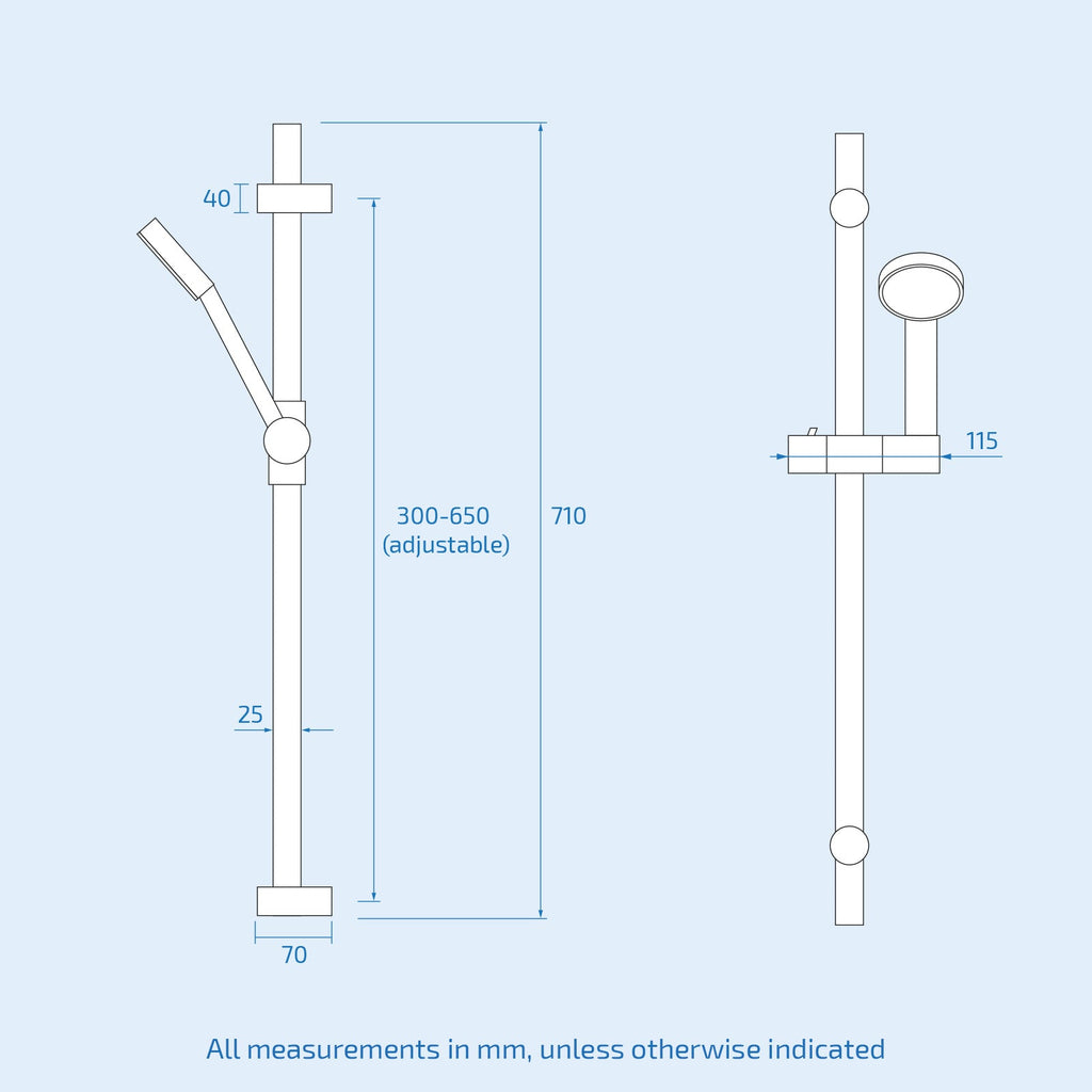 This slider rail sets come with a multi-function handset, featuring 3 spraying functions, which are easily adjustable to suit your own requirements. The shower kit includes a sliding rail, a matching shower handset, and a flexible shower hose.