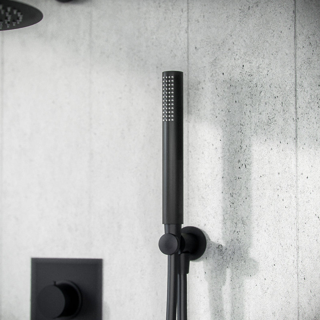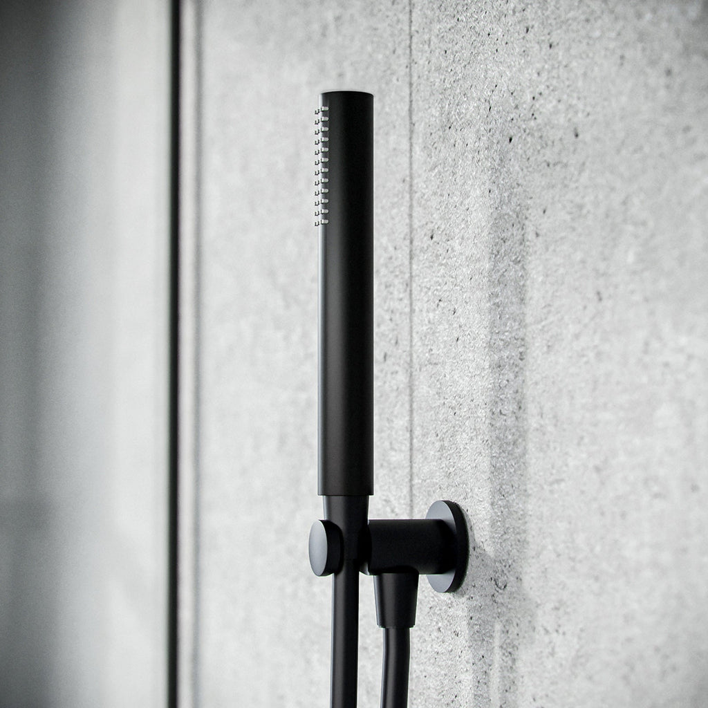 Replace your old stationary handheld shower with this stylish matt black handset, comes complete with hose and a wall bracket shower handset holder.