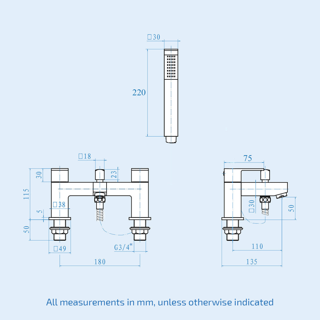 Take your bathroom to the next level with this modern square bridge deck mounted bath filler tap. This tap is made from beautiful brass construction and features a 3-layer PVD Chrome finish, providing you with a sleek and contemporary look. It also has an integrated shower kit with a handset and hose, making it easy to take care of your bathroom needs.