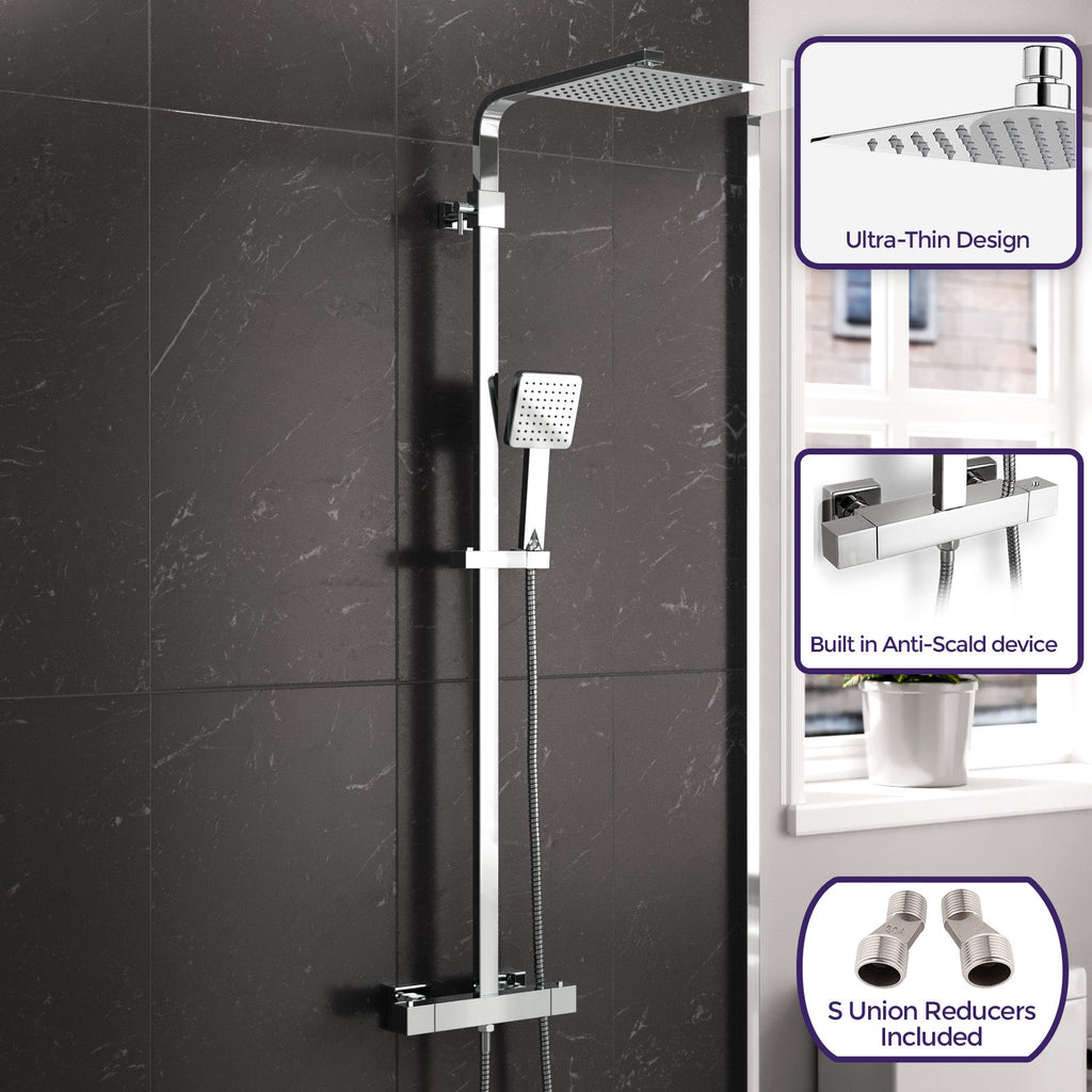 This thermostatic shower mixer with a bar valve allows you to halt or control the flow of your shower whilst the thermostatic control gives complete temperature performance, suitable for any modern bathroom.