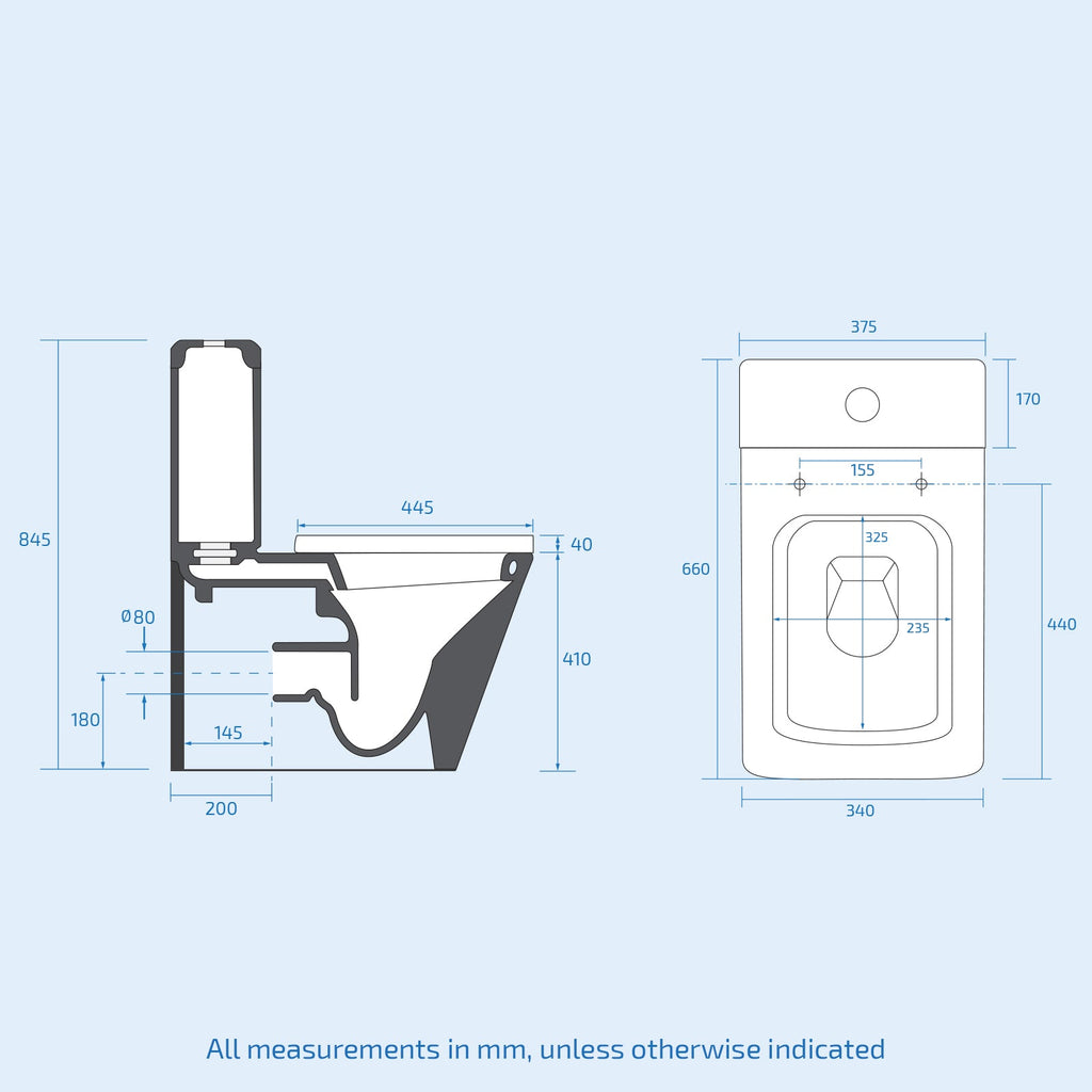 This stunning square rimless Close coupled toilet is the perfect balance of cost and quality, combining a clean, efficient rimless pan with a dual flush cistern. The dual flush cistern helps save water and therefore money, making this a great investment.
