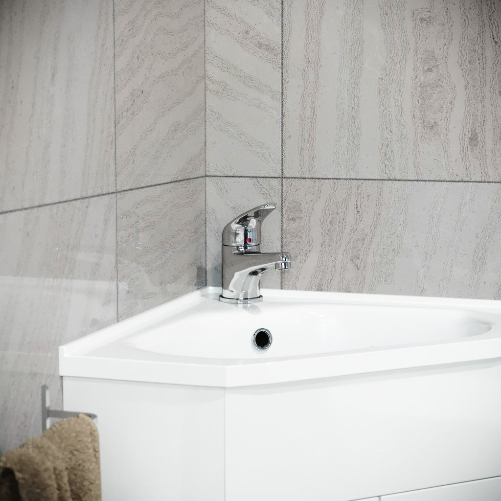 Nanuya Modern White Corner Vanity Unit with Ceramic Basin and Mixer Tap + Waste