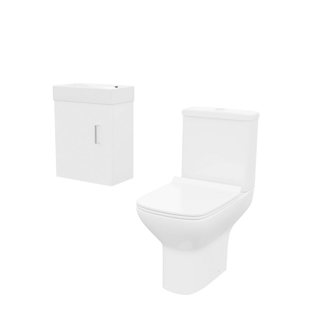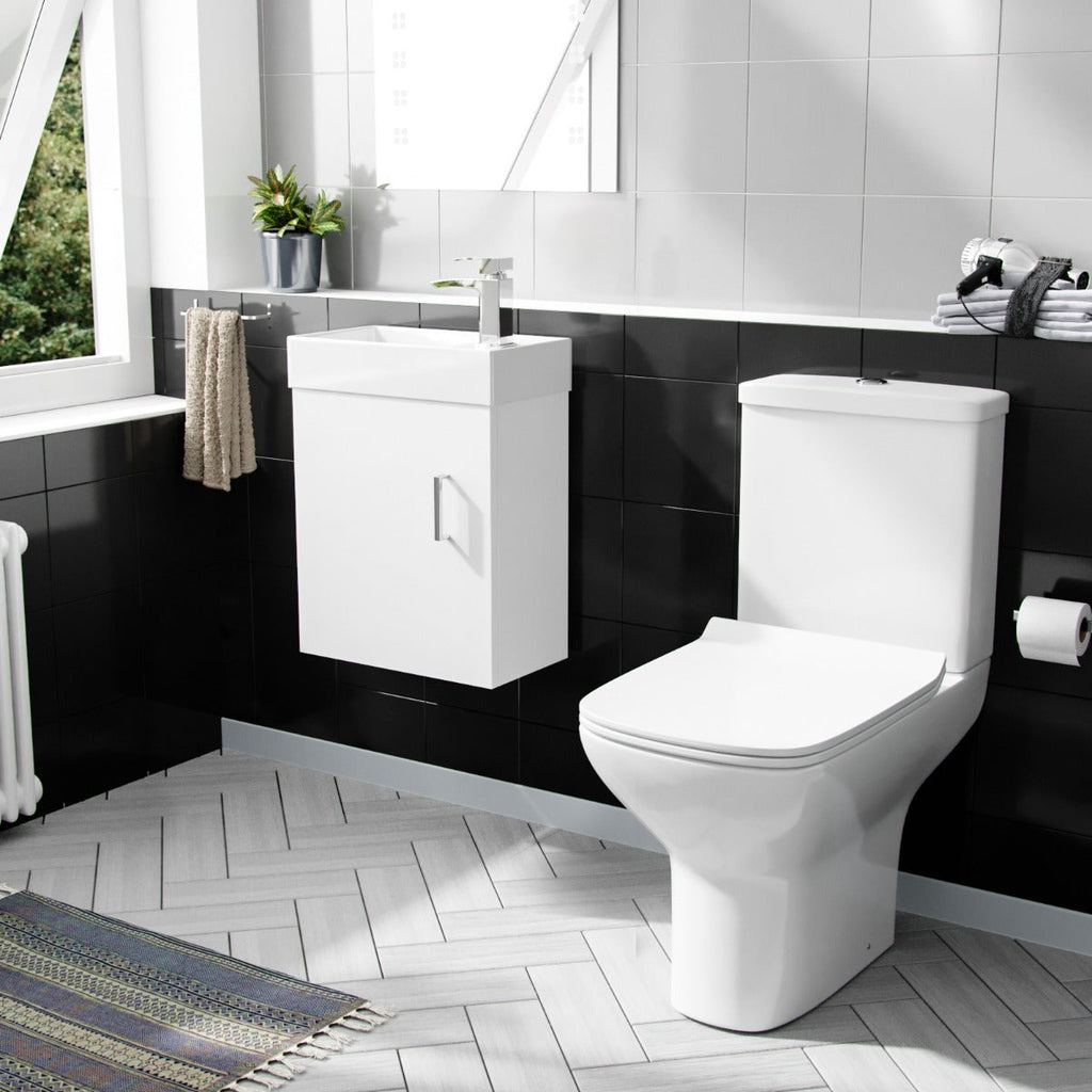Strong square shapes fuse with subtle curves to make a stunning rimless toilet and vanity unit that fits perfectly within a contemporary bathroom.