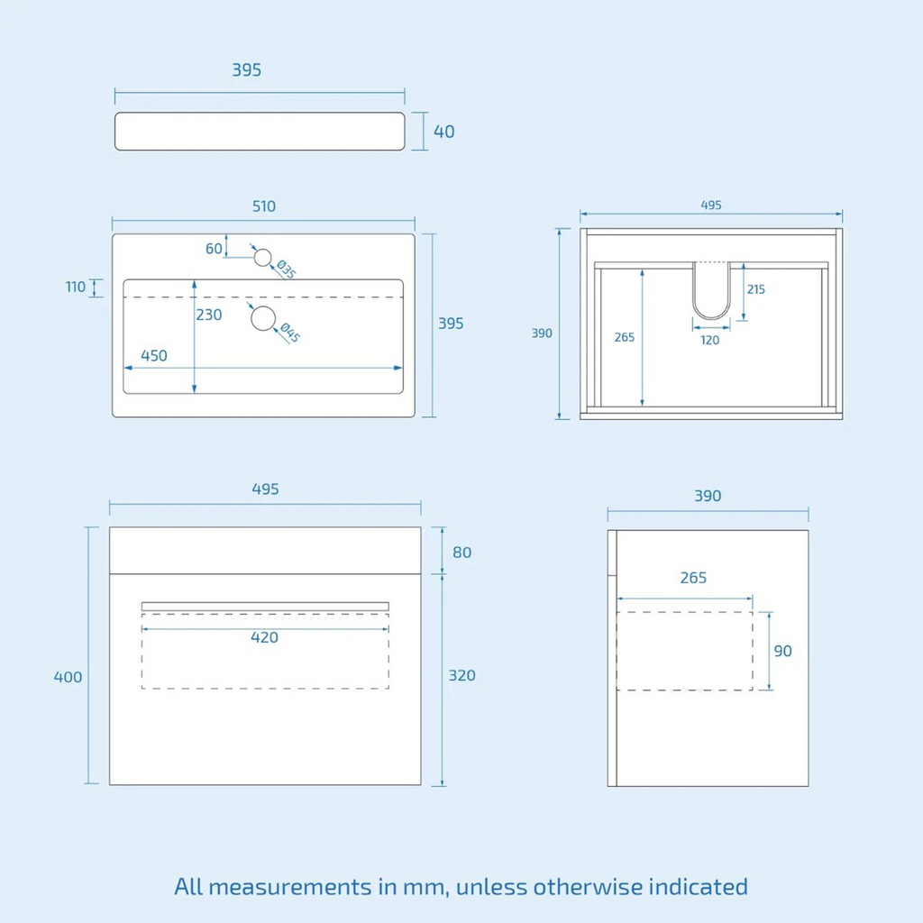 500 mm wide wall-hung vanity unit with one soft-close drawer — perfect for cloakrooms and small bathrooms
