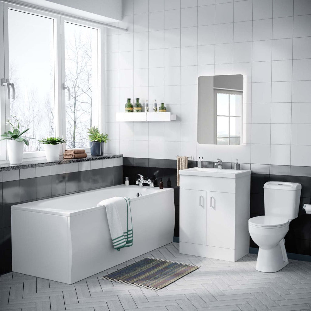The Nanuya 3-Piece Bathroom Suite is the epitome of luxury and style. The 1700mm bathtub provides ample space for a relaxing soak, while the sleek 450mm freestanding white Basin Vanity Storage Unit adds a touch of sophistication to your bathroom.