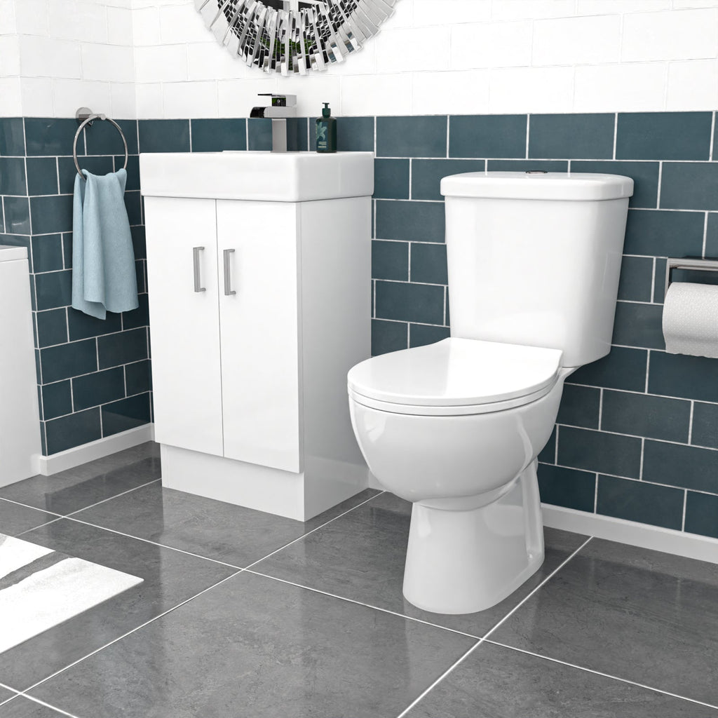 This beautiful 450 mm white gloss freestanding basin vanity unit comes complete with a high-quality basin and a closed couple toilet. Engineered with everyday use in mind, providing a storage solution for your bathroom, our Basin Vanity Unit gives you the best of both worlds, combining incredible durability and a beautiful gloss finish. This furniture also comes with a close coupled toilet completing your bathroom.